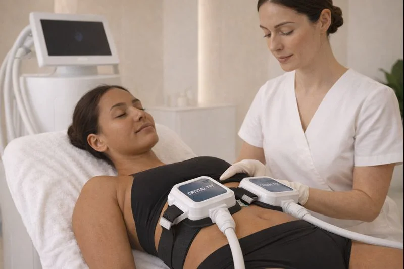 La cryolipolyse réduit efficacement les amas graisseux, tandis que le Cristal Fit augmente la masse musculaire et améliore la tonicité. En combinant les deux, les patients peuvent observer une réduction significative de la circonférence corporelle, une meilleure définition musculaire et une peau plus ferme.